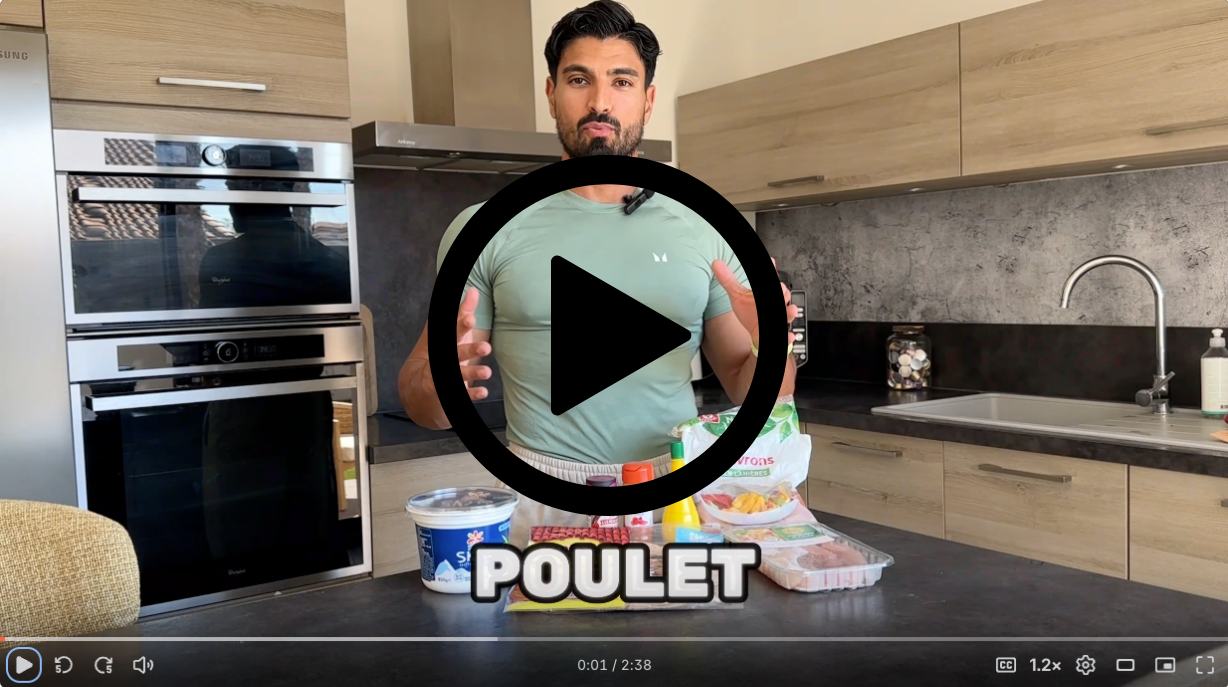 - 250 g de poulet (pesé cru, en aiguillettes ou découpé soi-même)